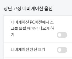 이 옵션은 상단 고정 네비게이션 옵션에서 네비게이션 완전 제거를 활성화 하면 작동합니다.