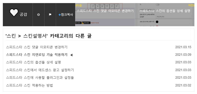 이제 공감 버튼 하단쪽에 [**관련글**]을 볼 수 있는 글상자를 출력할 수 있게 됩니다.
