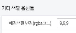 위의 사진의 경우 기타 색깔 옵션들 배경 색깔 변경에서 검정 계열의 rgba 코드를 넣은 모습입니다.